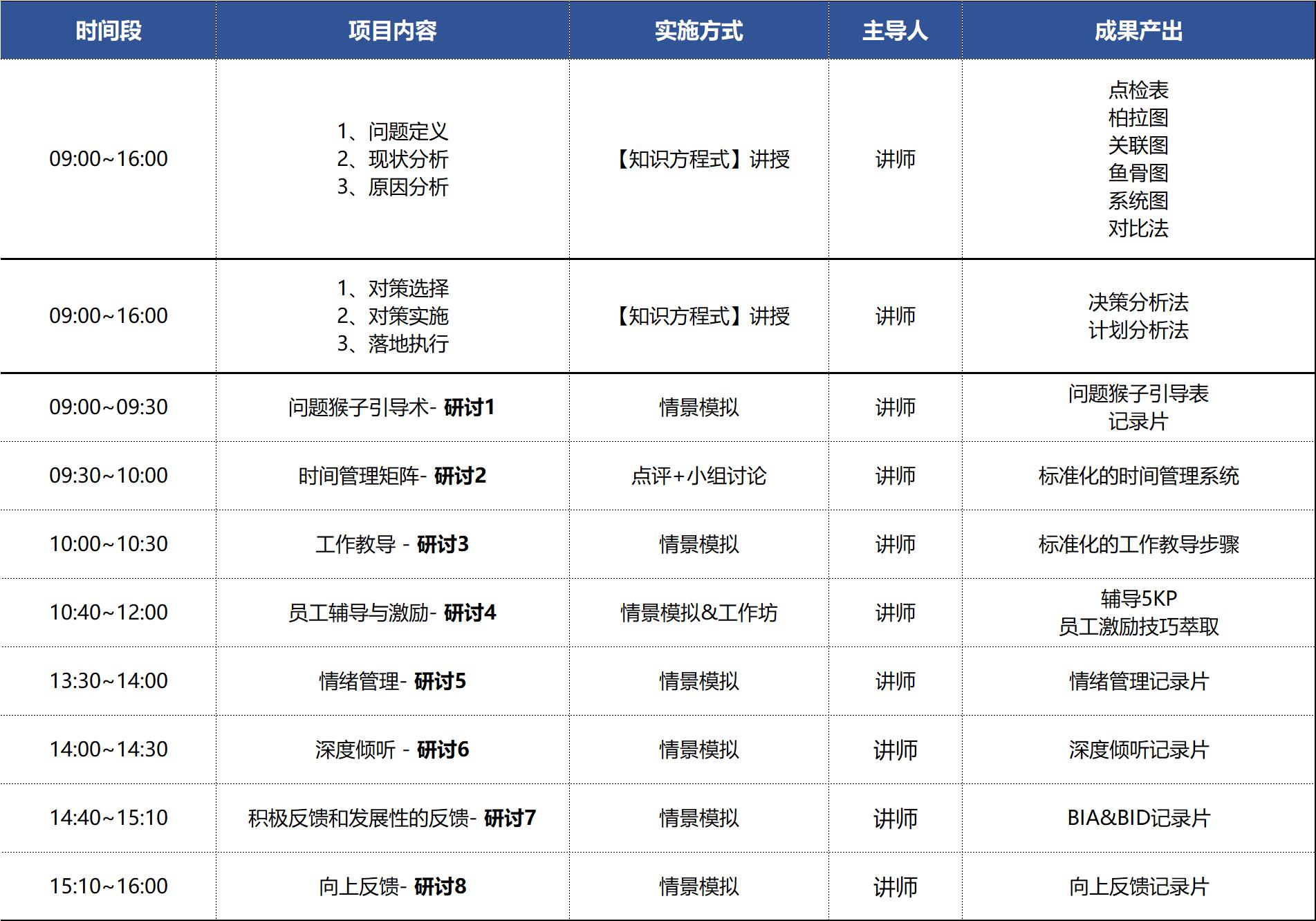 本次課程的主題是《管理者思維 - 結構化的問題分析與解決》,課程開始老師便提出了定義問題的四個“點”,分別是切入點、關鍵點、突破點、落地點,通過不同問題點的案例引導班組長進行問題的思考,創新思維,找到解決方法。其中問題分析與解決的步驟為:界定問題、要因分析、確認方案、落地執行。