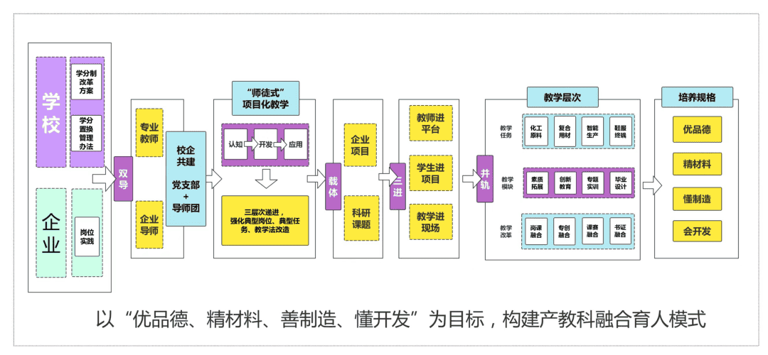以“優(yōu)品德、精材料、善制造、懂開發(fā)”為目標(biāo),構(gòu)建產(chǎn)教科融合育人模式